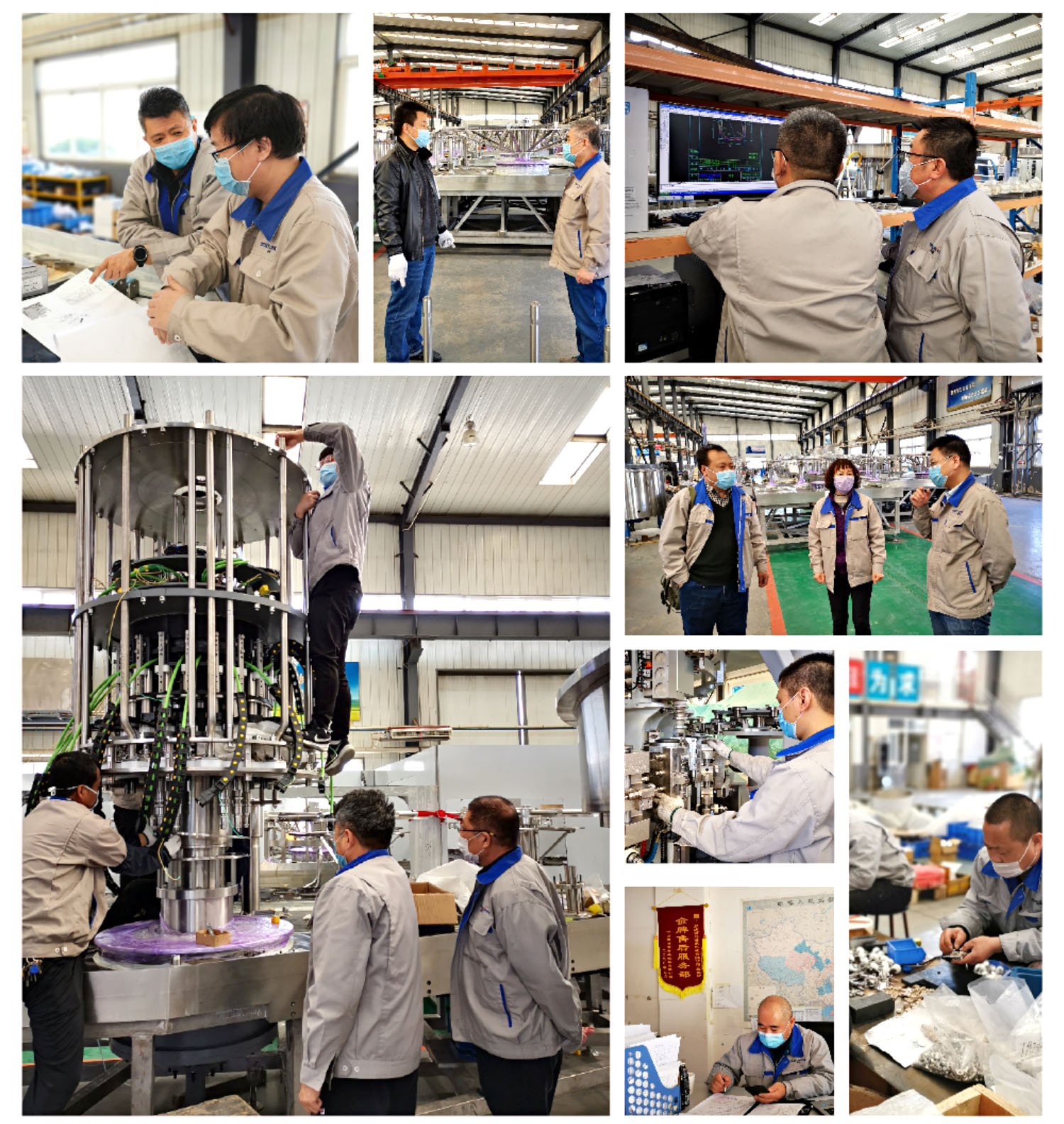 在這個春和景明,天清地明的時節裏,國内的疫情漸趨平穩,各行各業的生産生活也逐漸恢複。廊坊百冠,在嚴格防控疫情的前提下,把生産經營推向瞭(le)常态化的快車道。元氣森林的高速無菌線已進入精裝階段,國内外的訂單均已陸續投産。爲瞭(le)趕工期,保質量,抓進度,公司領導常駐一線,現場辦(bàn)公。銷售、技術、生産、質檢、售後、行政等各個系統全部調動起來,圍繞客戶的訂單統籌兼顧,全力以赴,進行瞭(le)緊鑼密鼓的調度安排,開啓瞭(le)熱火朝天的工作模式。